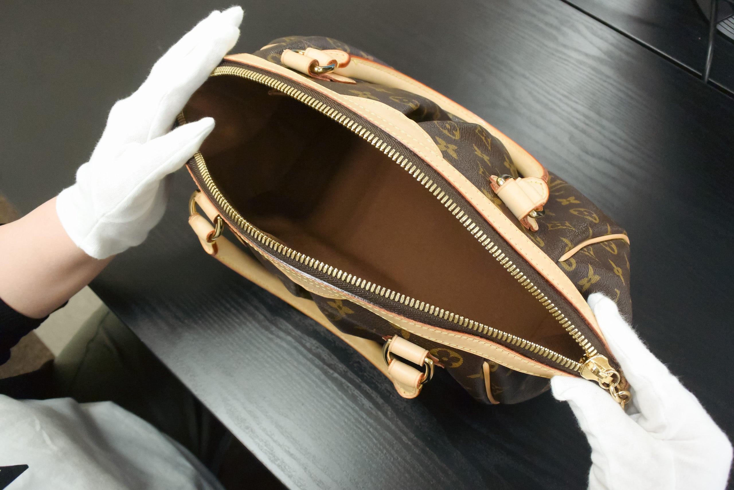 We carefully inspect for any scratches, marks, or discoloration that may have occurred since the bag was first received.