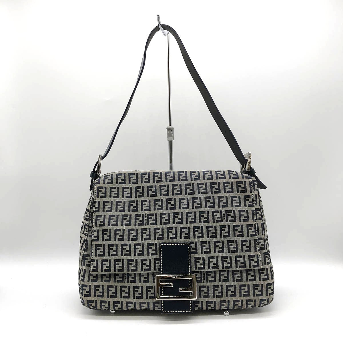 Fendi Zucchino Mamma Bucket Canvas Shoulder Bag in Navy